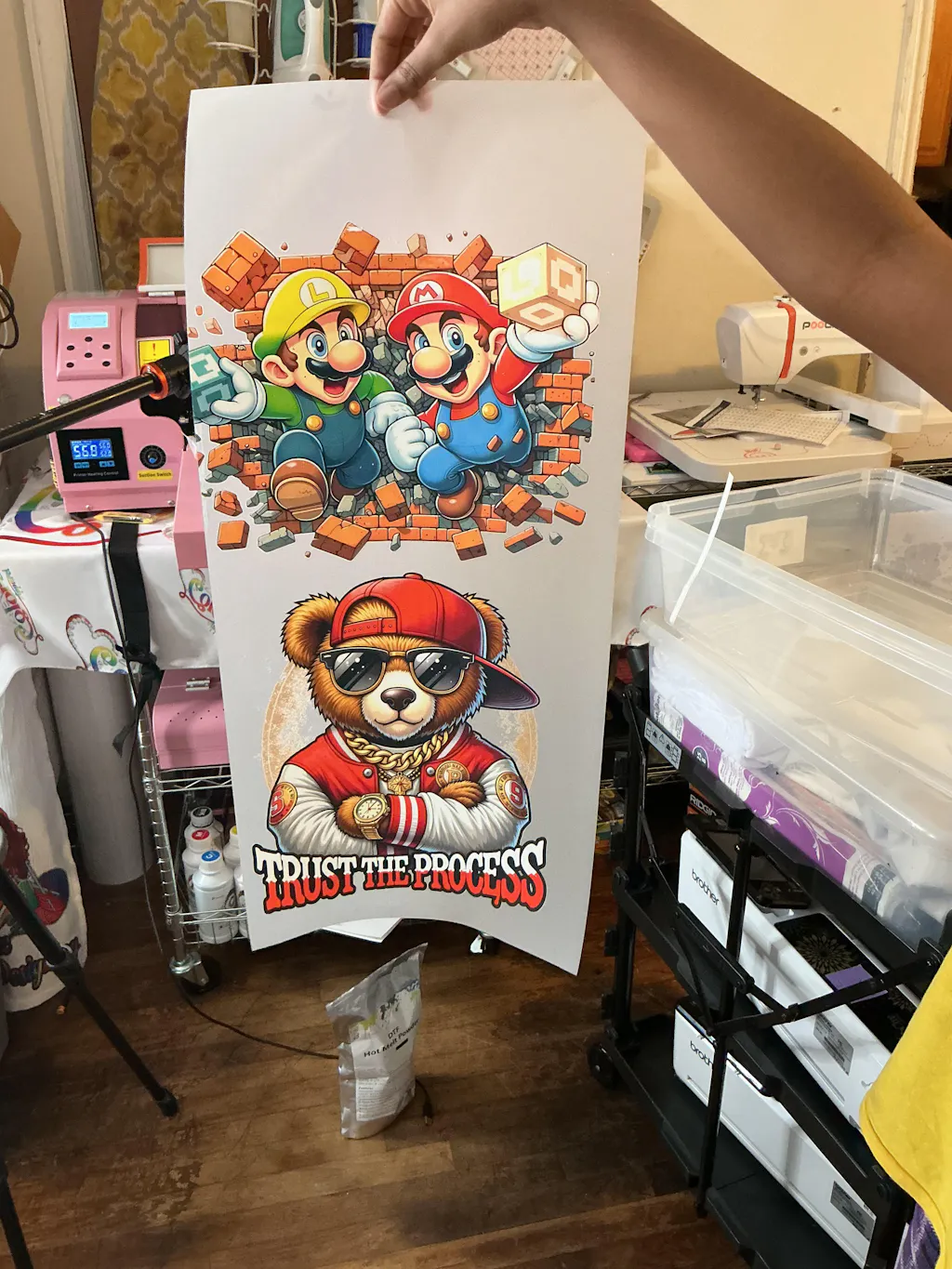 Printer + Shaker (Printer on table, Shaker on floor) |
