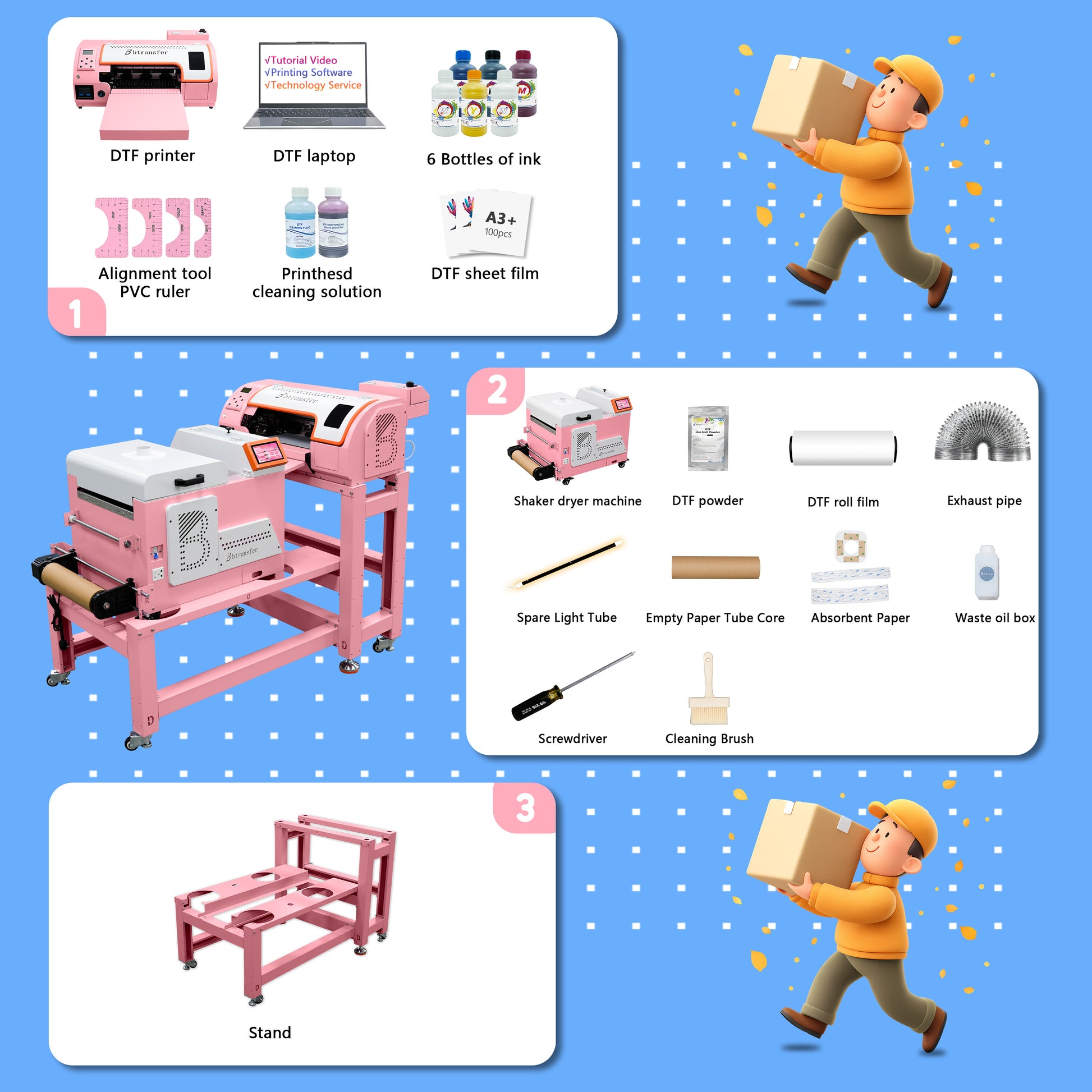 - ✅ 【All-in-One DTF Bunble】-M1630 pro DTF printer + A3 shaker & dryer machine + Portable stand ,Space-saving, portable, convenient for indoor and outdoor DTF printing
